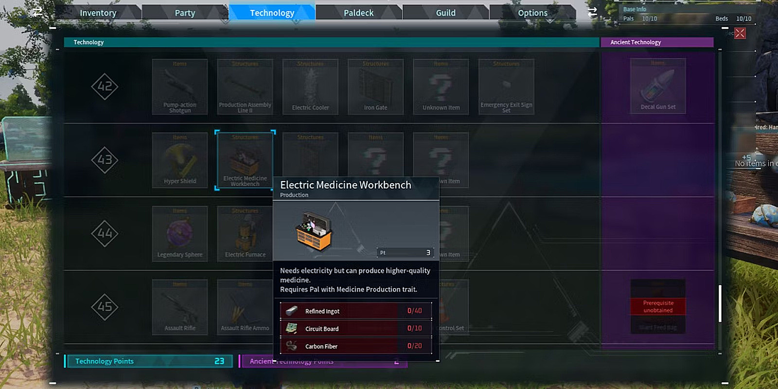 Building the Electric Medicine Workbench represents a major milestone in your Palworld technological advancement. This specialized crafting station requires dedicating three precious technology points to unlock the necessary blueprint, a significant investment that competes with other late-game options. The construction materials reflect its advanced nature, requiring substantial resource gathering efforts: