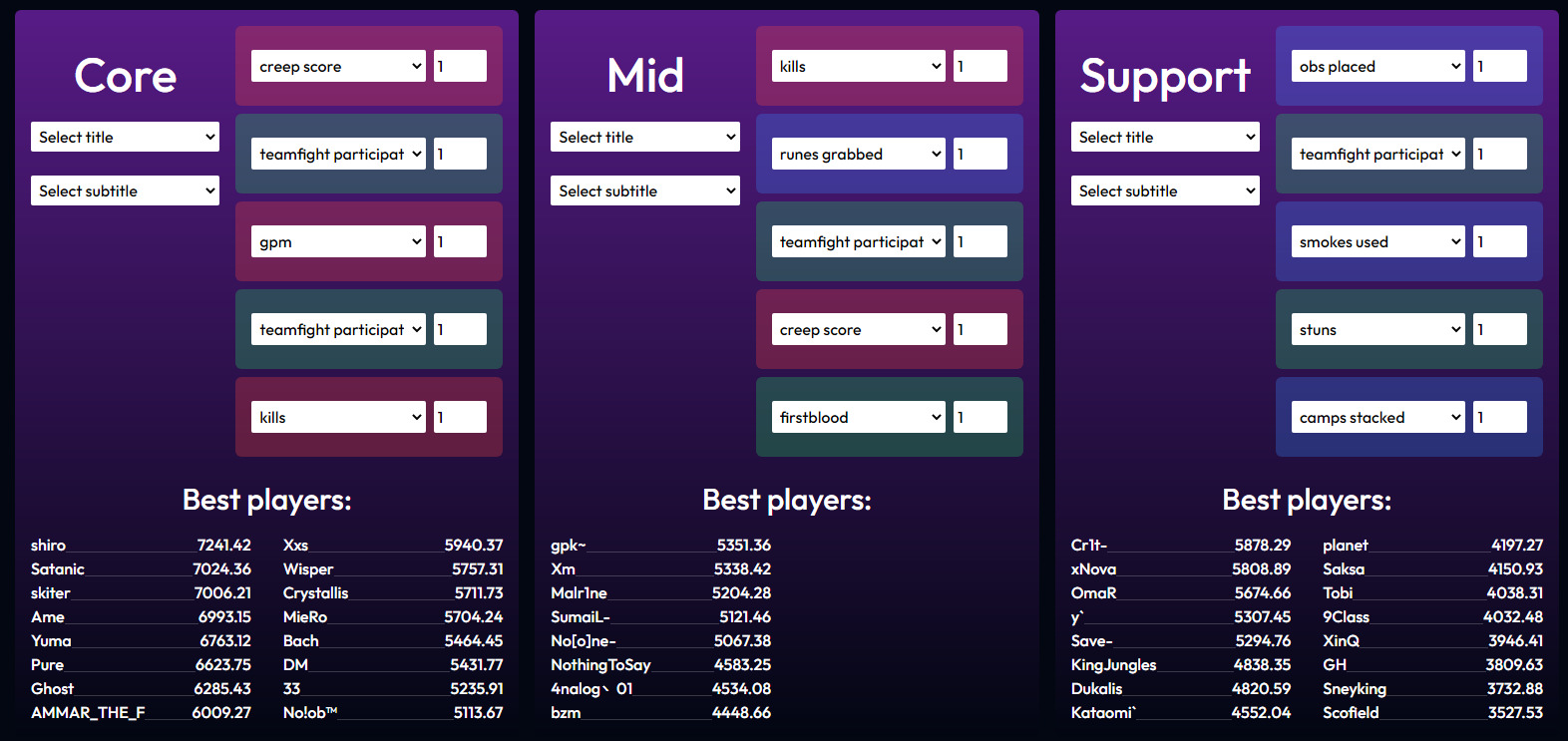 A critical optimization technique involves filtering tournament data exclusively to TI14 performances, eliminating statistical noise from previous competitions that may not reflect current form. Additionally, consider player roles and team strategies—some positions naturally accumulate higher statistics in certain categories, while team playstyles significantly impact individual scoring patterns. The fantasy calculator tool remains accessible here for immediate strategic planning.