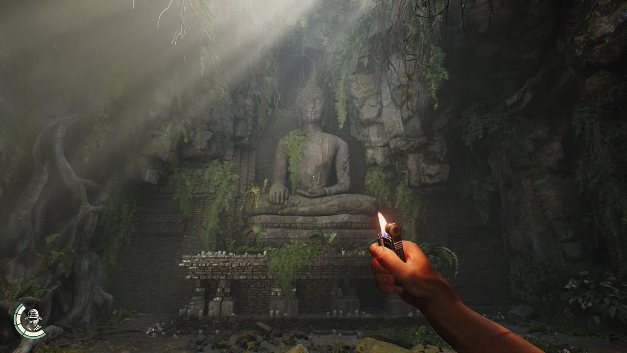 Proceed to the camp’s rear section where you’ll encounter a compact temple adorned with elephant carvings. Upon entry, a prominent Buddhist Statue activates the Indiana Jones and the Great Circle Elephant in the Room puzzle sequence.