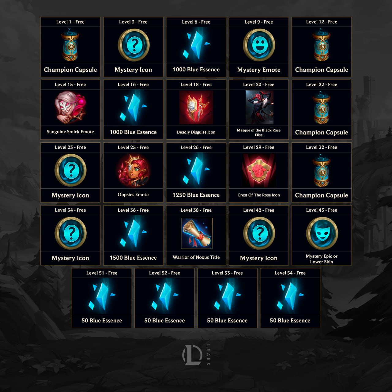 • 3650 RP – Complete Bundle: All pass rewards plus 25 Mythic Essence and exclusive chroma