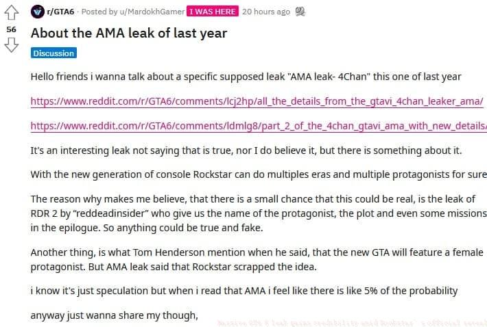 RedditThe supposed GTA 6 leak is a popular topic on Reddit.