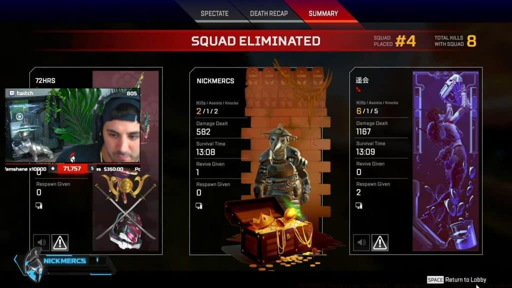 NICKMERCS gets unexpected hacker carry in Apex Legends ranked, revealing competitive integrity issues