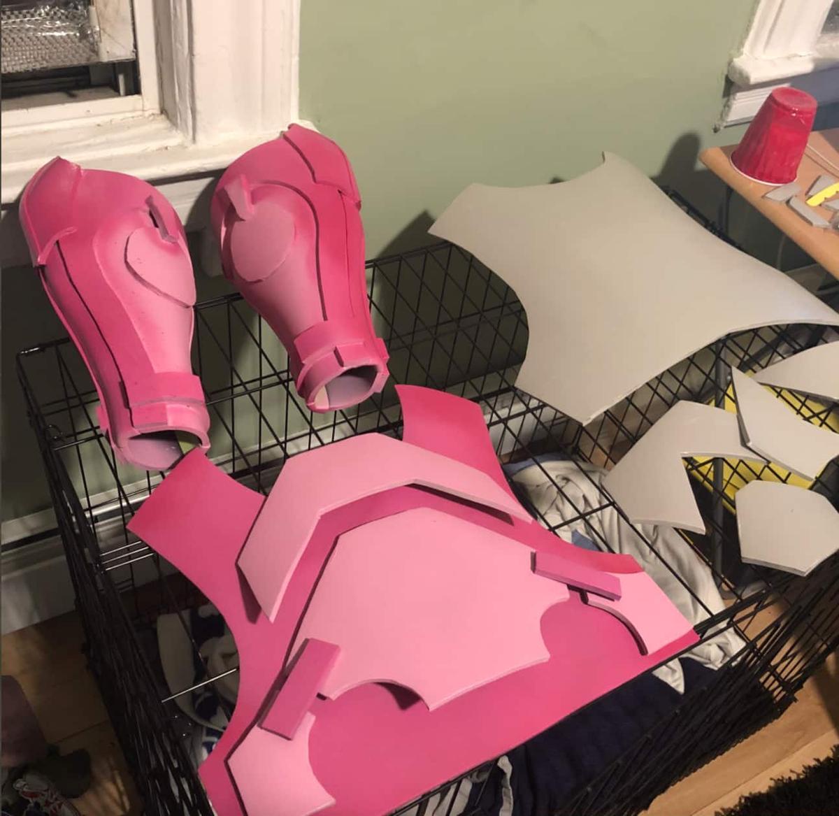 The cosplay’s lightweight construction reveals Juni’s innovative approach to materials. Using paper as the foundation allowed for precise shaping and easy modification during the design phase. The artist then layered pink foam over this base to create the armor plating, achieving both durability and visual impact without excessive weight.