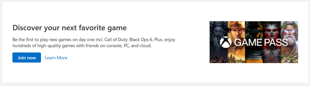 - Proceed to the Services and Subscriptions area, then activate Join Now adjacent to Game Pass offerings