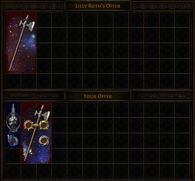 Considered the advanced version of the Chaos Orb recipe, this method requires vendoring a complete set of rare equipment where every piece meets the item level 75 threshold. The complete set includes: body armor, helmet, boots, gloves, belt, amulet, two rings, and any valid weapon configuration (two-handed weapon, one-handed weapon with shield, dual one-handed weapons, or dual shields).