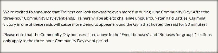 No reproduction without permission:SeeYouSoon Game Club » Pokemon Go extends June Community Day, but there’s a catch Navigating Niantic's Extended June Community Day with Deino and Zweilous Raid Mechanics for Maximum Rewards