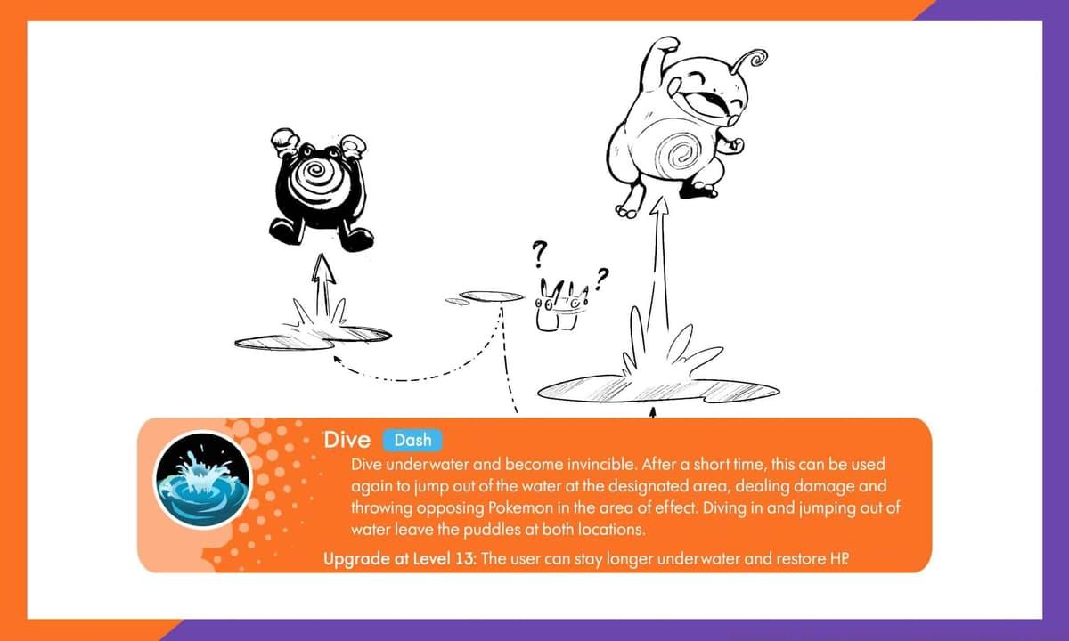 Dive provides both offensive engagement and defensive repositioning capabilities. Politoed’s mobility toolkit features Bounce and Dive, offering sophisticated positioning options. Bounce allows landing directly on enemies or entering existing puddles, with puddle entry resetting the cooldown entirely. This creates skill-expressive gameplay where strategic puddle placement enables continuous mobility. Dive immerses Politoed underwater, rendering it untargetable while selecting a resurface location. Upon emerging, Politoed launches nearby Pokemon airborne while dealing damage, and the dive entry point becomes another puddle source. This ability serves both as an initiation tool and escape mechanism.