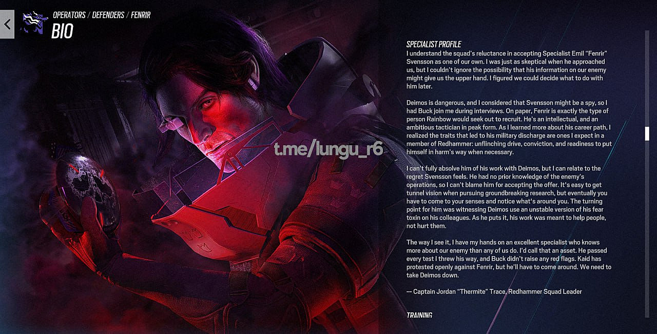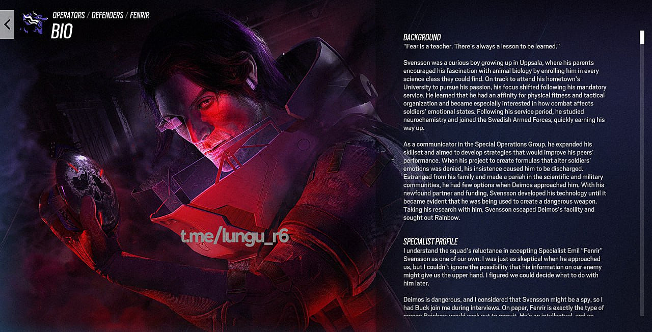 According to reliable data miner Lungu_r6, Fenrir’s real identity is Emil Svensson, hailing from the historic university city of Uppsala, Sweden. This location choice reflects Ubisoft’s pattern of drawing operators from culturally significant regions, similar to how they’ve developed characters from other strategic military backgrounds. Game files indicate he operates without formal organizational affiliation, following the established pattern seen with independent operators like Oryx, Flores, and Azami who bring unique perspectives outside traditional command structures.