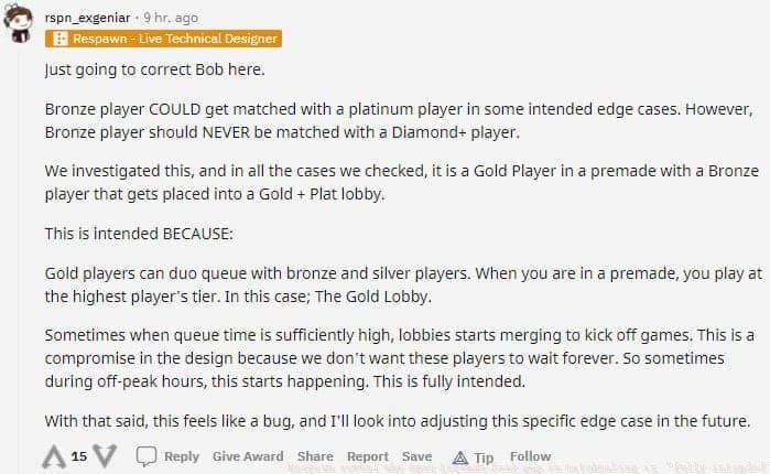 The community’s role is to provide clear, constructive feedback based on understanding the system’s constraints. Reporting a Bronze player in a Diamond lobby as a potential bug (which violates the stated design rule) is helpful. Complaining about a Gold/Platinum mix during a 3 AM queue is less so, as that is the system functioning as intended to provide any game at all. Moving forward, an informed player base that understands these “edge cases” can better adapt its play, provide targeted feedback, and ultimately enjoy a more consistent Apex Legends experience, even when the matchmaking isn’t perfect.