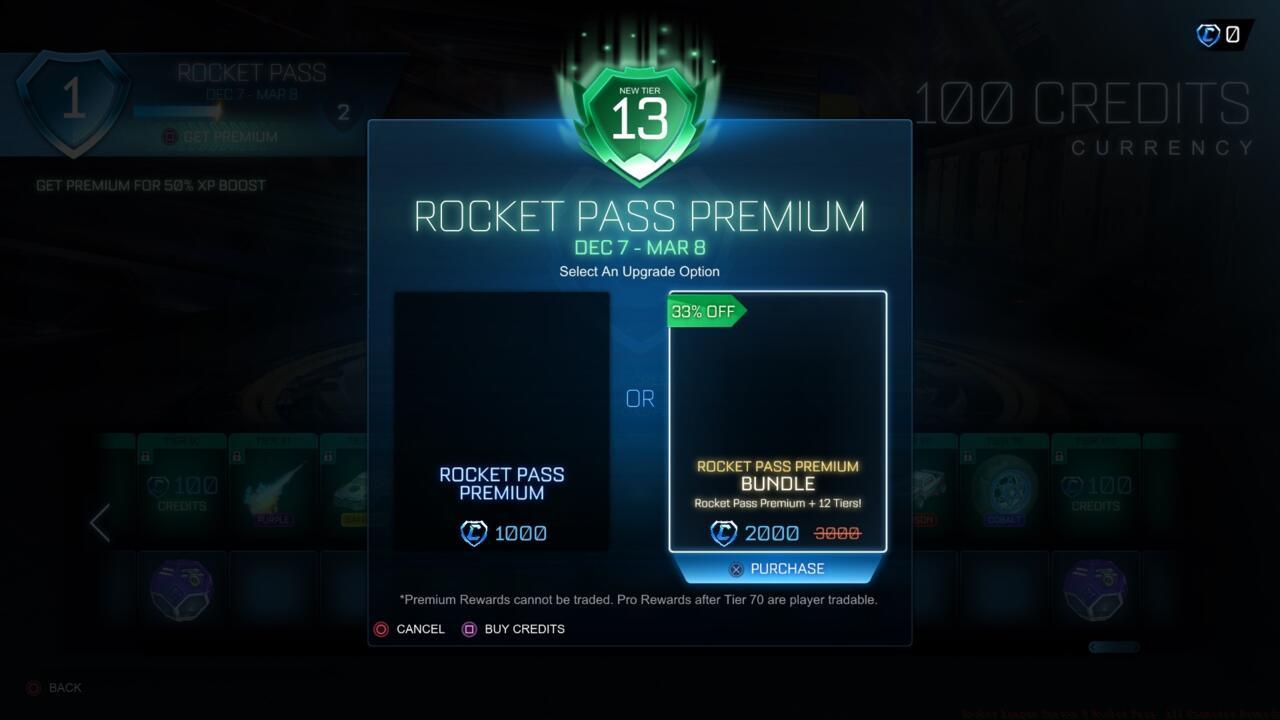 - Premium Pass costs 1,000 Credits with instant tier unlocks available