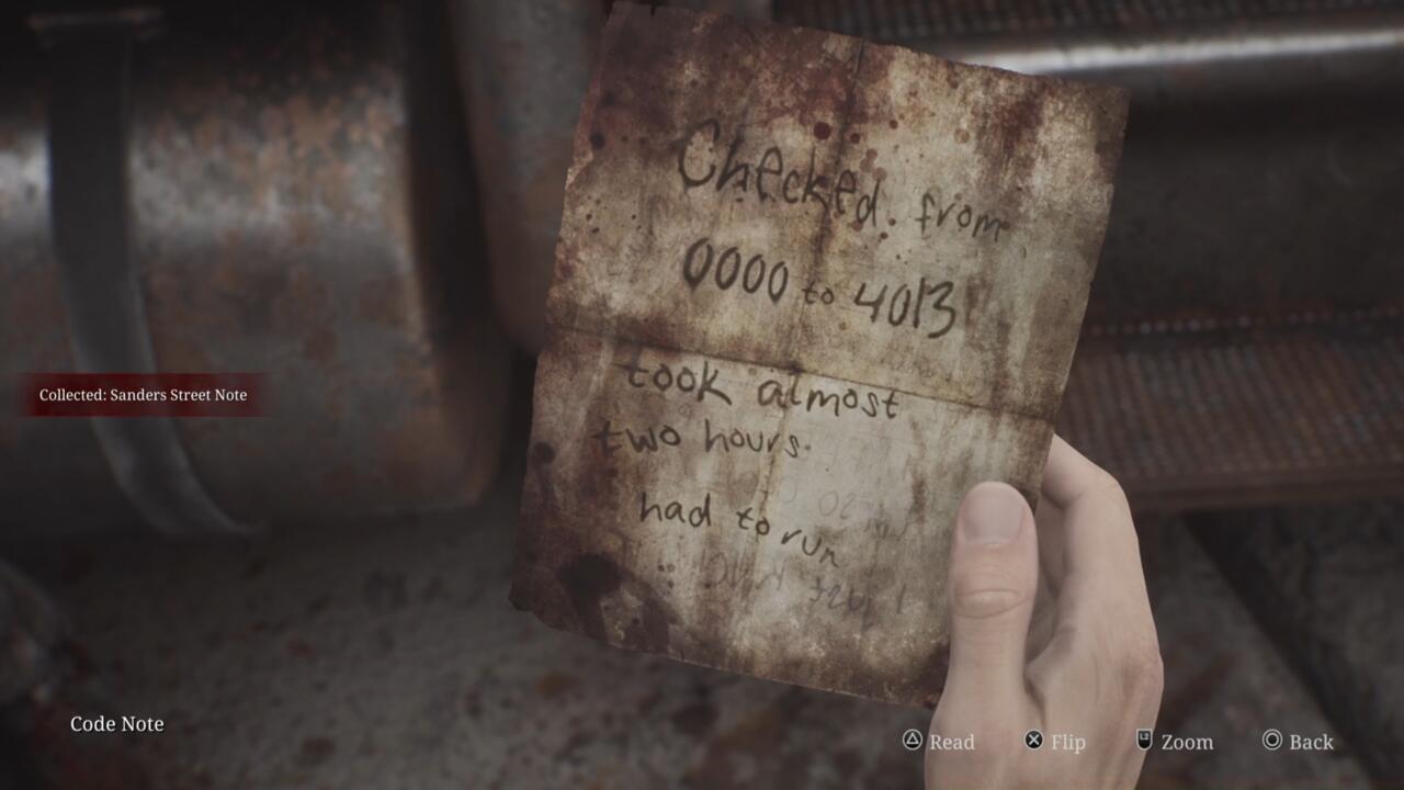 - Find the code clue on Sanders Street near a semi-truck with two Lying Figure enemies