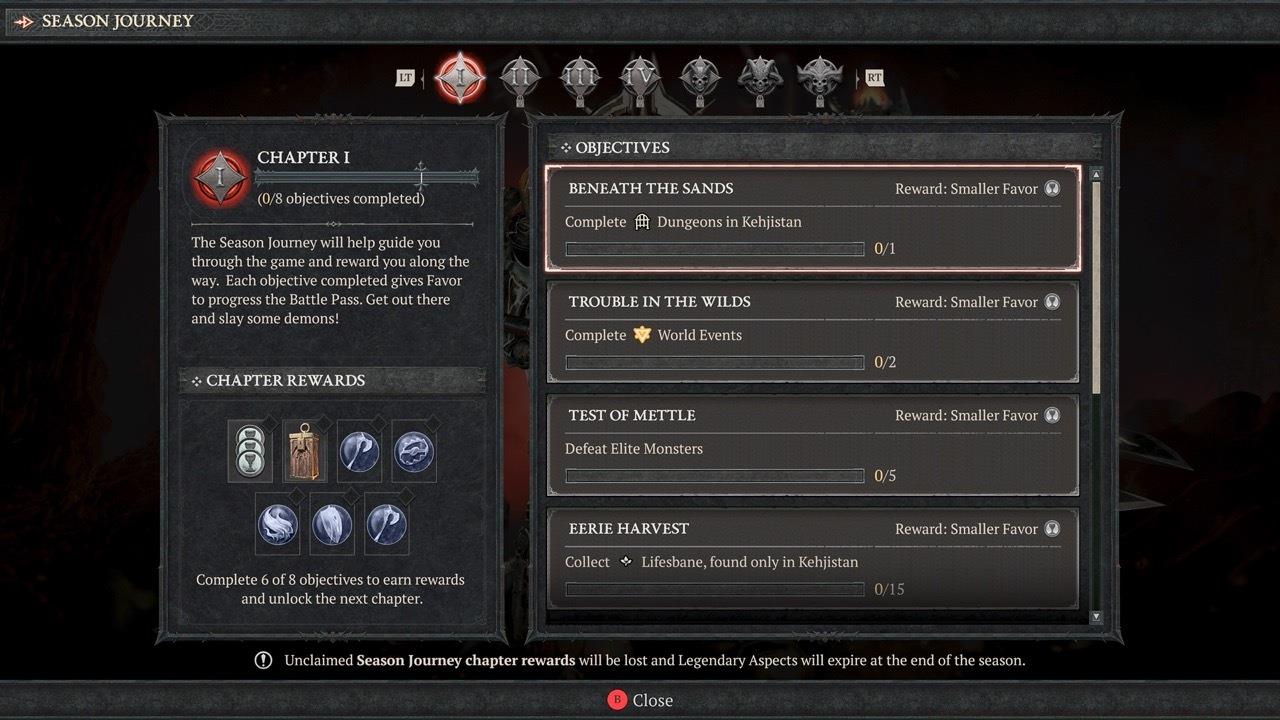 1TL;DR Complete specific chapter objectives to unlock legendary aspects and rare crafting materials Season 3 requires new characters but tailors objectives to natural leveling progr...