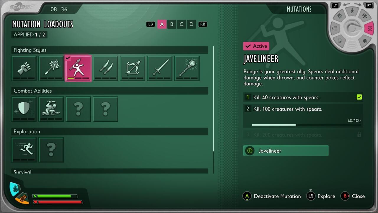 2TL;DR Mutations provide specialized buffs across four categories: Fighting, Combat, Exploration, and Survival Unlock Mutations by completing weapon-specific kills, exploration goal...