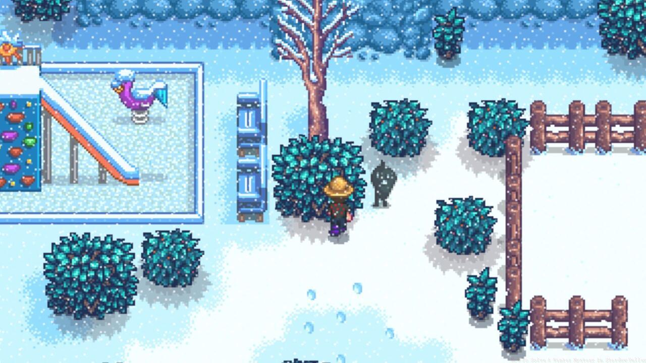 1TL;DR Trigger the Winter Mystery quest by visiting the Bus Stop between 6 AM and 4 PM starting Winter 1 Follow snow footprints from Bus Stop to bush near Community Center and playg...