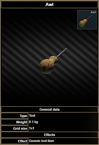 - Awls spawn in technical supply crates, wooden toolboxes, and general barter spots across all maps