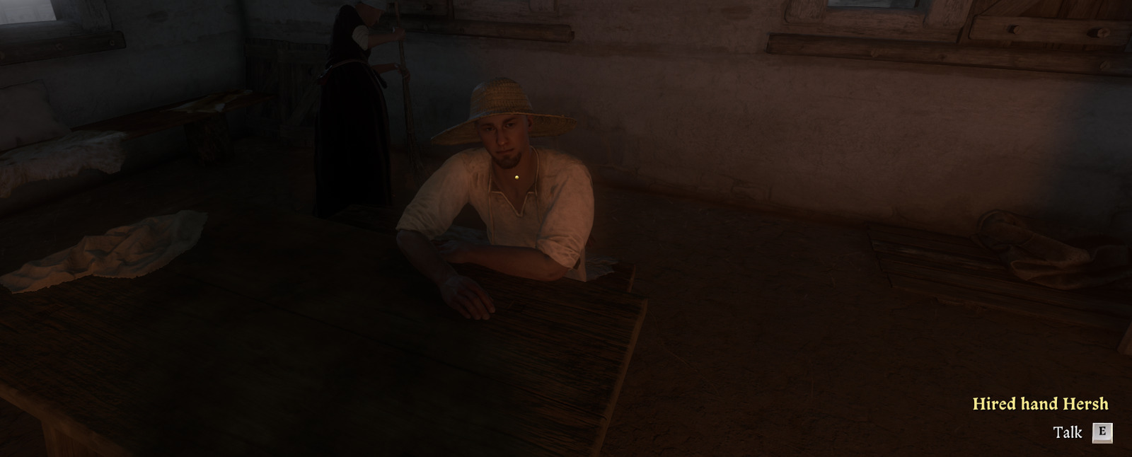 - Stableboy Hersh works in the exterior compound near the designated stable structures. If initially unseen, investigate behind the main stable building. He resides in the cottage across the roadway and is identifiable by his distinctive straw headwear, though his in-game designation appears as Hired hand Hersh.