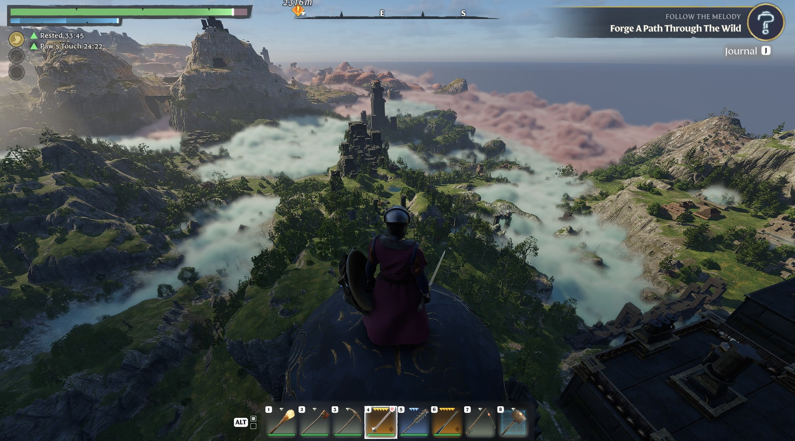 - Teleport to Ancient Spire summit to scout fishing locations