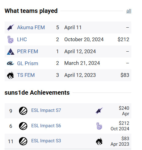Svetlana “suns1de” Mevlid, currently 18 years old, competes professionally for Akuma Female. Their organizational history reveals an interesting connection: During a short timeframe in 2023, both were affiliated with the same esports organization. She represented the TS Female lineup while donk developed his skills within the academy team structure. This shared organizational background provides context for their initial connection and subsequent relationship development.