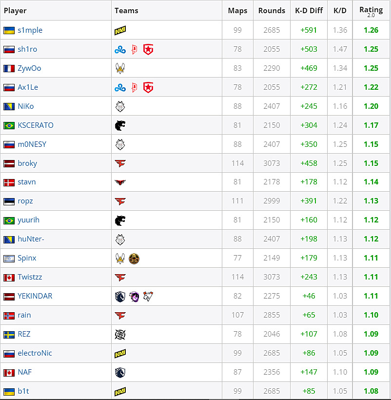 - Analyze player statistics from premier tournaments using HLTV’s rating 2.0 system