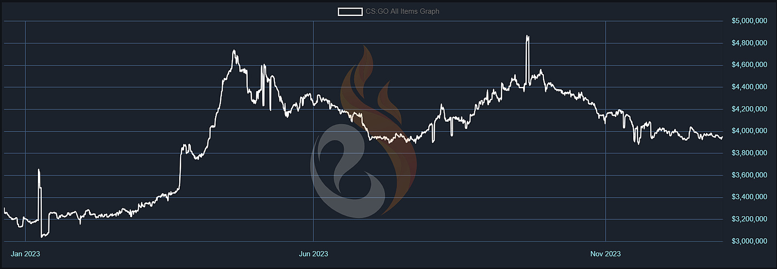 - CS2 skin prices stabilized after November 2023 lows, with premium items showing slight recovery while budget skins remain volatile