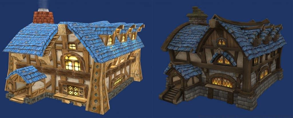 The comparative imagery clearly displays the familiar Human cottage design that players have encountered since 2006 alongside its modernized version. Immediate observations reveal substantially refined texturing and the introduction of additional architectural details that enhance visual fidelity.